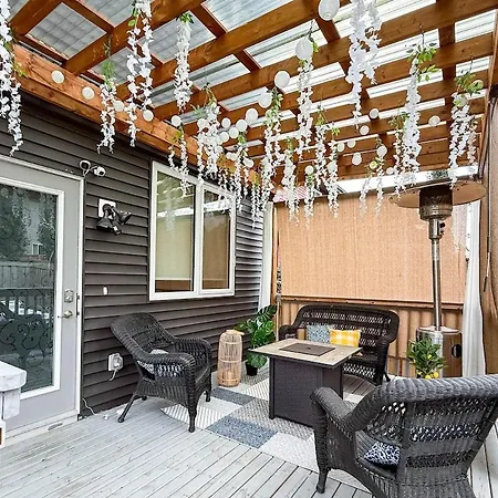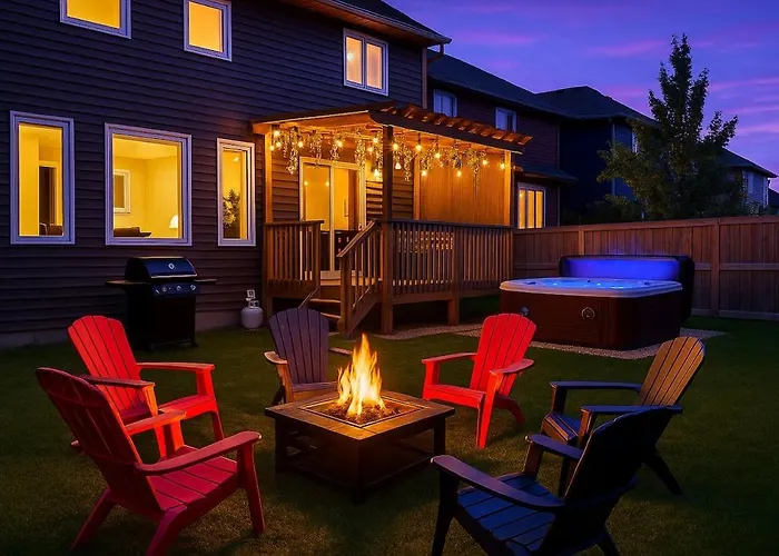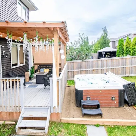広々としたエドモントンOutdoor Oasis-Hottub-Bbq-Firetable-Ac-Kingbd-85In TvアパートメントはEdmonton Event Centreから6km以内で、ルイス エステーツ ゴルフ コースから歩いて19分の場所にあります。 WiFiと無料の専用駐車場は、顧客に必須の設備のひとつです。